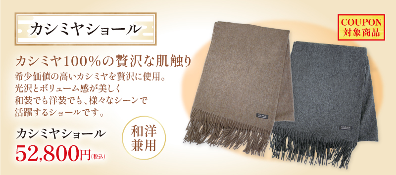 希少価値の高いカシミヤを贅沢に使用。光沢とボリューム感が美しく和装でも洋装でも、様々なシーンで活躍するショールです。