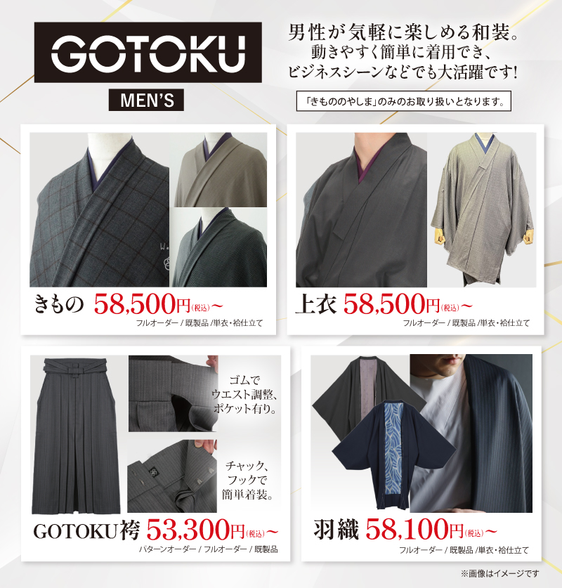 男性が気軽に楽しめる新しい和装。着心地がよく簡単に着用でき、ビジネスシーンなどでも大活躍です!