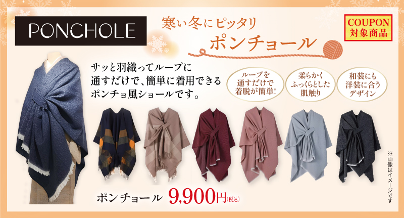 サッと羽織ってループに通すだけで、簡単に着用できるポンチョ風ショールをご紹介いたします。