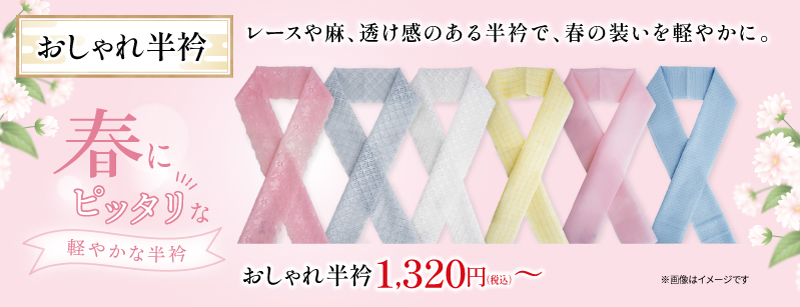 レースや麻、透け感のある春にピッタリな半衿を取り揃えました。