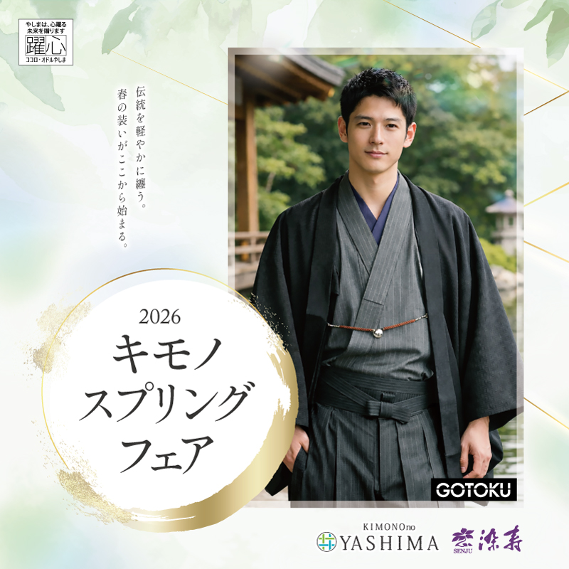 きもののやしま・染寿の各店で、キモノスプリングフェアを順次開催いたします。フェア期間中だけのお買得な商品を多数ご用意しております。ぜひ最寄りの店舗にお越しください!